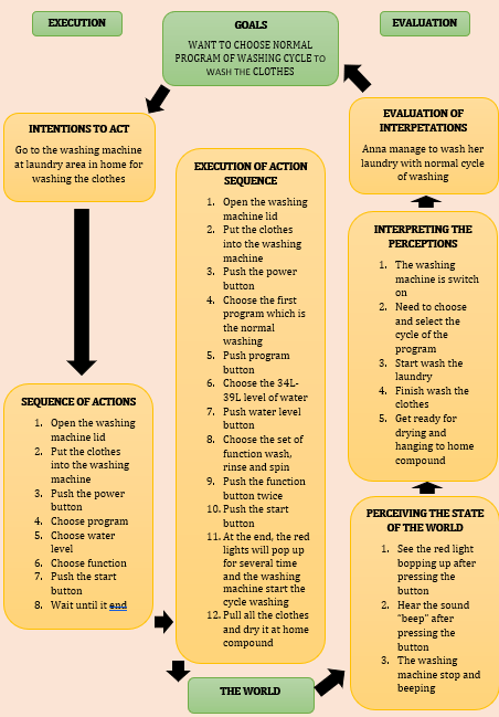 Anna woke up late in this morning. She has to get ready her children and do her house chores quickly. She also worried that she will attend her lectures late. After prepared the breakfast, she do her laundry. She worried that if her laundry done late. The interface of the laundry did not shows the time remaining her laundry be done. She did not understand why certain day when she do her laundry, the time remaining is below one hour. Beside that, at one time her washing machine beeping three time. Anna get confused at that time, the washing machine did not tell any causes of that incident happen. After one hour, her laundry done. Anna already late to attend her lectures, because of that she only can send her children to day care. Sadly, she has to skip the morning class and only attend the afternoon class.