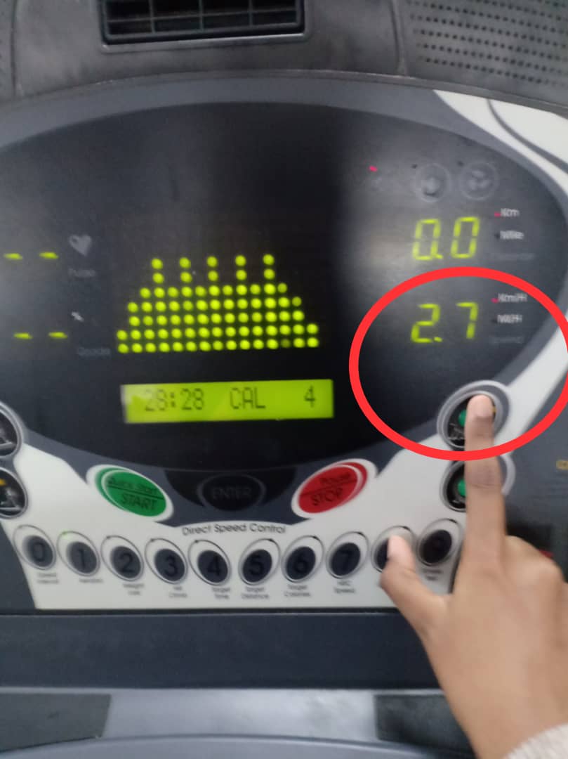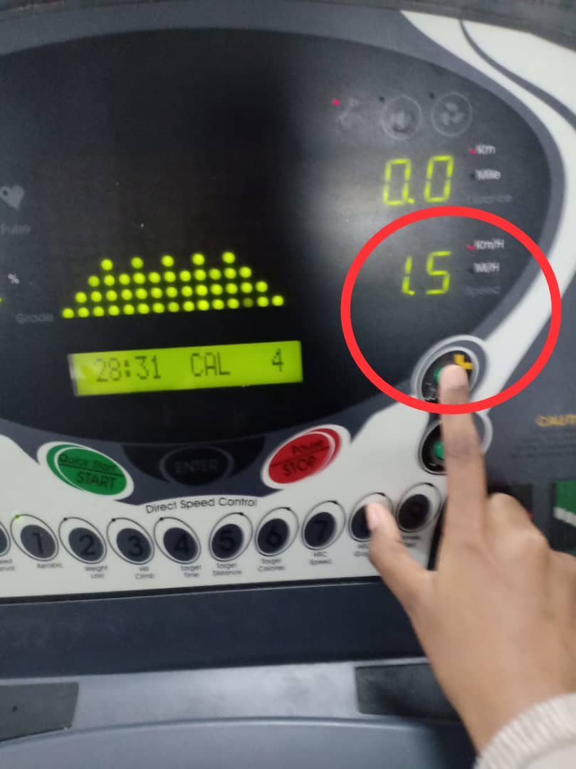 The LCM will display the speed of the running treadmill belt and the distance. The displayed speed can be changed anytime when the user slow down or speed up the workout program. The left image below shows that the initial speed of the treadmill belt which is 1.5 KM/H. The right image shows that the user increasing the speed up to 2.7 KM/H.