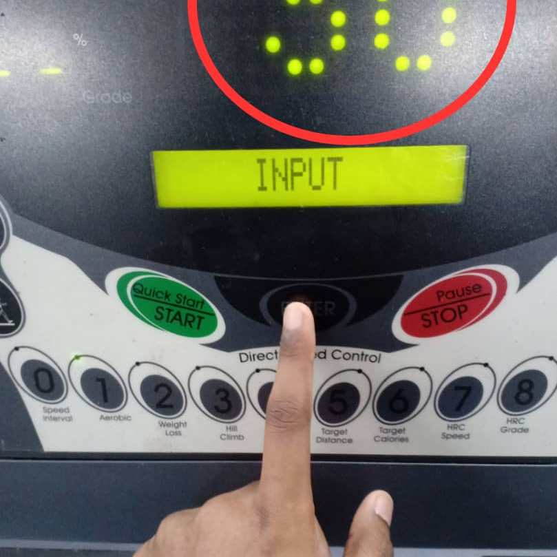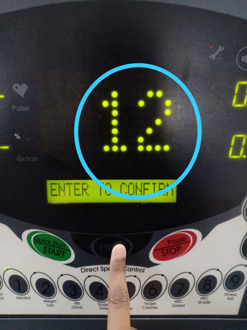The LED (dot matrix display) will display ’30’ which represents the workout time. The LCM will display ‘ENTER TO CONFIRM’. The user need to press ‘ENTER’ button to confirm the value input or workout time.