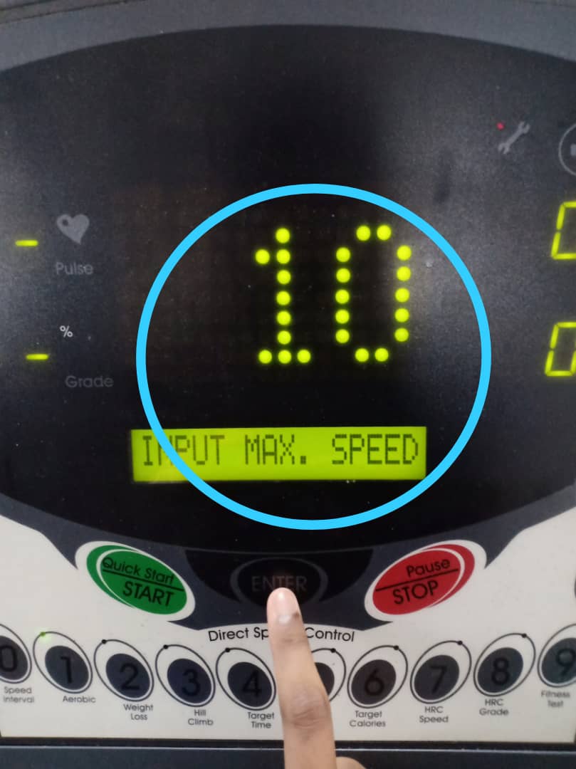 The LED (dot matrix display) will display ’10’ which represents the maximum speed. The LCM will display ‘ENTER TO CONFIRM’. The user need to press ‘ENTER’ button to confirm the value input or maximum speed.