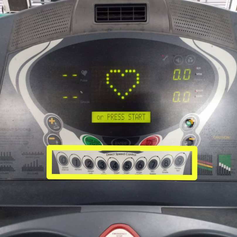 When the user presses the number 1 button, the fingertip able to feel the exerted forces to the surface of the buttons. The user can feel when the button is pushed downward. A clear and well-specified labelling helps the users to perform the task well even though the button has the same shape or colour. The numerical buttons have the same colour and shape but the clear labeling under each button helps the user to perform the task easier. The user will press the button with number 1 on it for Aerobic program.