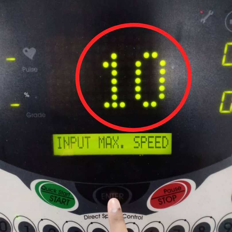 The user need to press the numerical button to key in the value for maximum speed. Press button number 1 and press button number 0 for the 10 km/h maximum speed in 2 seconds.