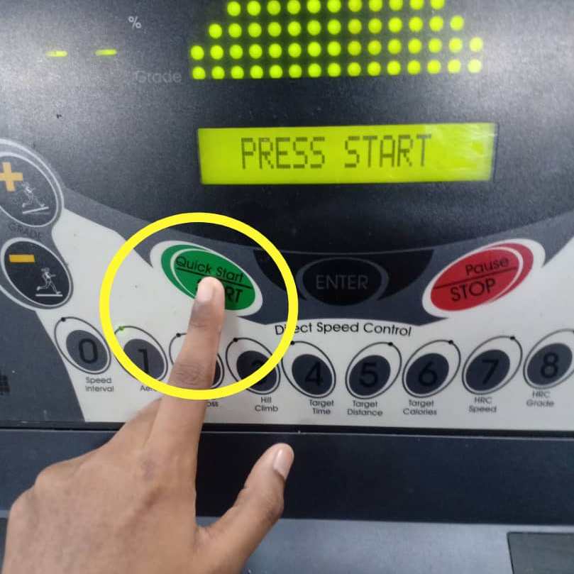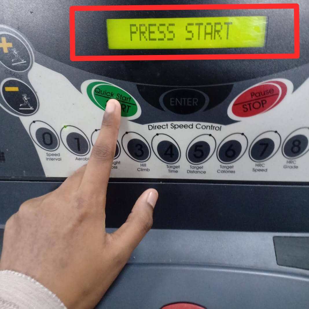 5. The LCM will display “PRESS START”. The user need to press ‘QUICK START/START’ button to begin the Aerobic program.