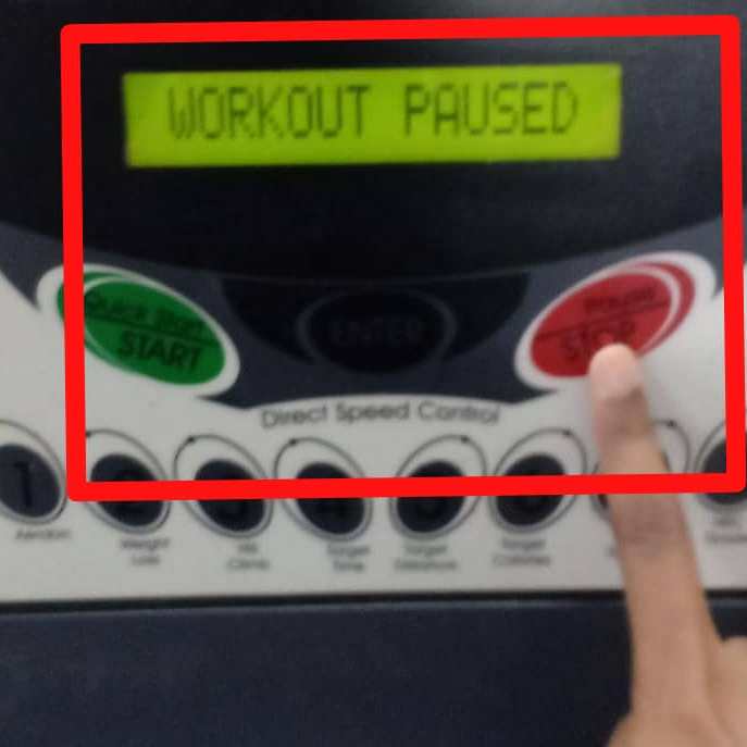 The user press the ‘PAUSE/STOP’ button at 2 minutes and 53 seconds during the Aerobic program. The LCM will display “WORKOUT PAUSED” and the LED (dot matrix display) will display ” 2:53″.