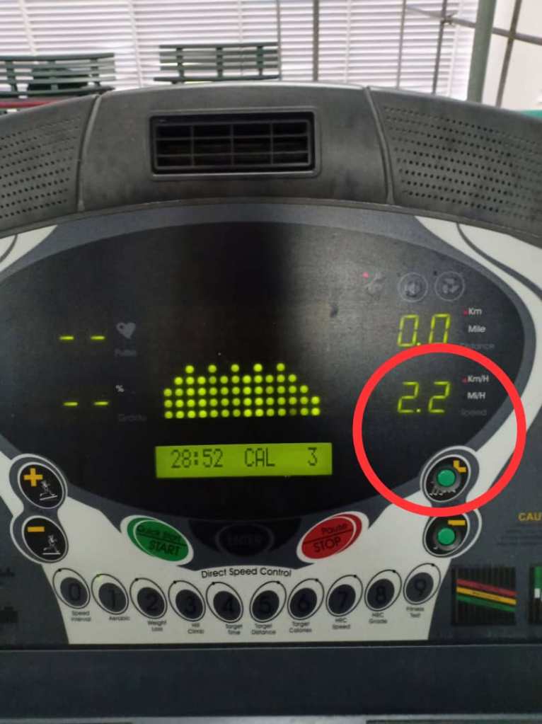 A quantitative speed reading would show that user is running or jogging at 2.2 kilometres per hour on the LCM.